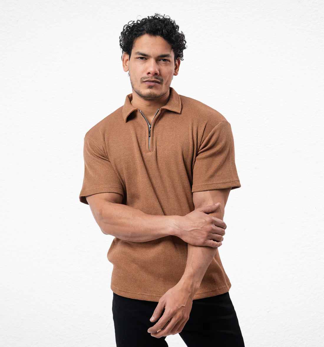 Dusty Brown Zipper Polo