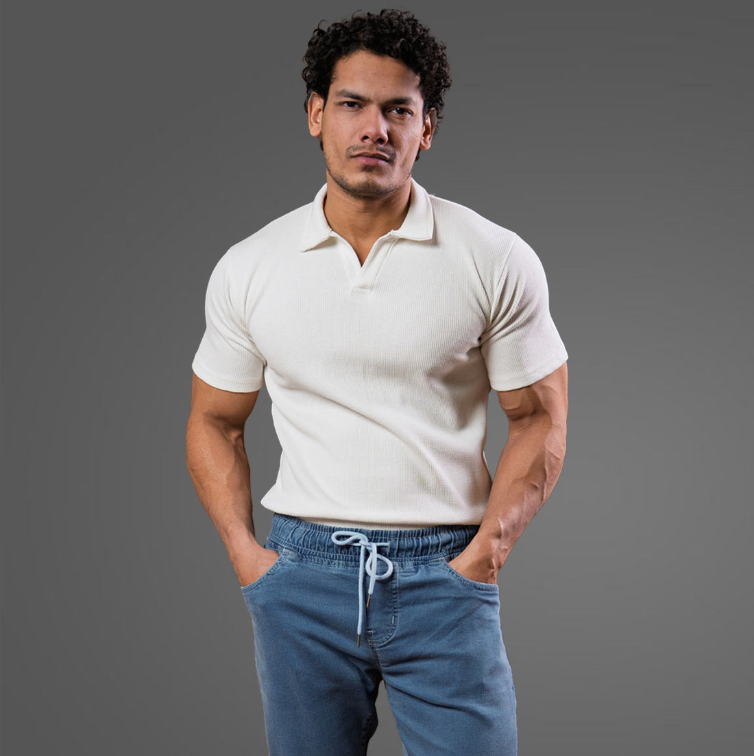 White Johnny Collar Polo