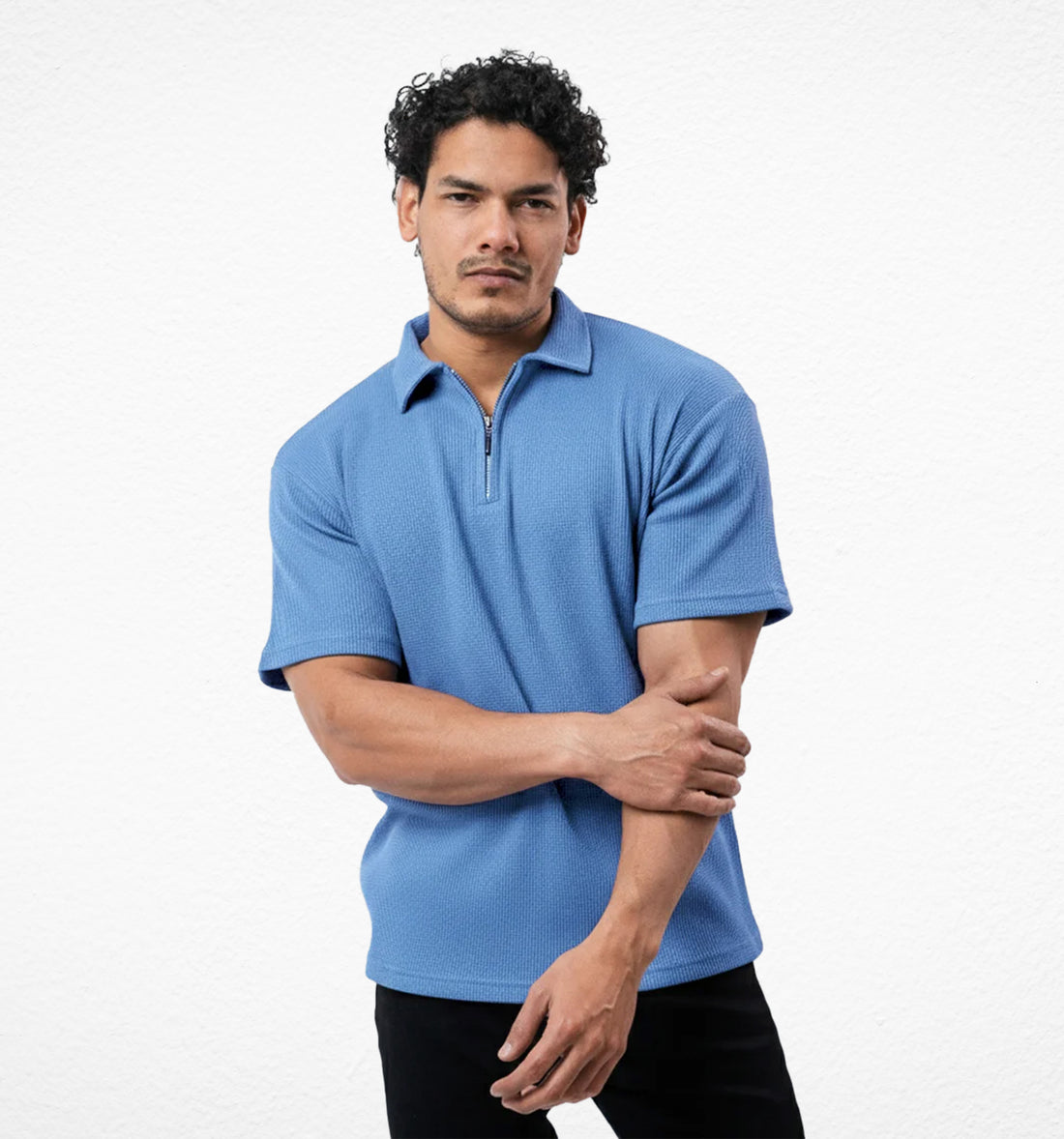 Ice Blue Zipper Polo