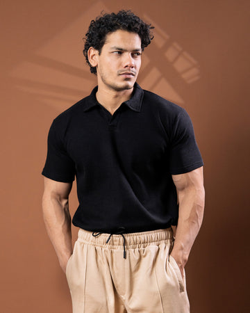 Black Johnny Collar Polo