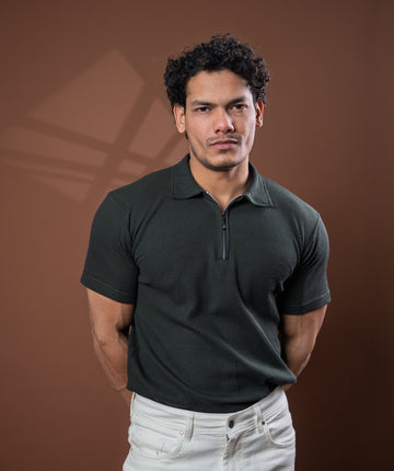 Olive Green Zipper polo